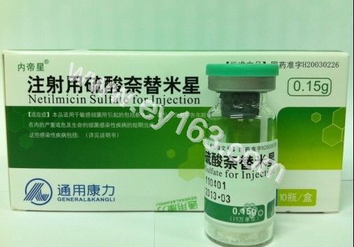 【藥代動力學】據(jù)PHYSICIANS’DESK REFERENCE(54版)介紹,奈替米星在肌肉注射后被迅速而完全的吸收。在肌肉注射后,通常在30~60分鐘內(nèi)達到血清峰濃度。并且濃度2小時內(nèi)都可以測得到。在有正常腎功能的成年志愿受試者中,肌肉注射后達到的血清峰濃度(以mcg/ml為單位)的數(shù)值通常約為其單一劑量數(shù)值的3~3.5 倍。例如:可以預料給2.0mg/kg的劑量達到的血清峰濃度為7mcg/ml。在以推薦范圍內(nèi)的劑量給藥后的8小時或更長時間后,血清濃度通常為3mcg/ml。當以60分鐘靜脈輸注的方式給單劑量的奈替米星以后的血清峰濃度同肌肉注射方式給藥后達到的濃度相似。在快速的靜脈注射后,血清中濃度是60分鐘輸注方式達到的2到3倍。奈替米星能迅速分布到組織內(nèi),同慶大霉素相似,奈替米星單劑量給藥后的半衰期通常為2至2.5小時,且并不依賴于給藥途徑。在給藥劑量增加后,半衰期也相應延長了。(例如:給藥劑量為1mg/kg時半衰期為2.2小時,而劑量3mg/kg的則為3小時)。在24小時內(nèi),約有80%的藥物在尿中排泄。在單劑量給藥后尿中奈替米星的濃度經(jīng)常超過100mcg/ml。沒有關(guān)于奈替米星在代謝中發(fā)生轉(zhuǎn)化的證據(jù)。藥物主要通過腎小球濾過作用排泄。丙磺舒(利尿酸藥)并不能影響氨基糖苷類的腎小管轉(zhuǎn)運作用,奈替米星的分布容積大約為體重的20%,總體清除率約為80ml/min,腎清除率約為60ml/min。在志愿受試者的多劑量給藥研究中,每12小時給藥一次,范圍1.0到4.0mg/kg,在第二天觀察到穩(wěn)態(tài)血藥濃度。穩(wěn)態(tài)血藥濃度比首次給藥時得到的血清濃度高出不到20%。同其它氨基糖苷類一樣,在腎功能下降導致腎清除率降低時,奈替米星的半衰期增加了。內(nèi)源性肌酐清除率和血清肌酐水平同奈替米星的半衰期有高度的相關(guān)性。以上幾項測試的指標可以作為在有腎臟損害病人使用奈替米星時調(diào)整劑量的依據(jù)。當有腎功能明顯損害的病人,尿中氨基糖苷類的濃度下降,同時,氨基糖苷類向有缺損的腎實質(zhì)滲透性也發(fā)生下降。這在治療尿路感染的病人時應當加以注意。在一項針對腎功能喪失正在接受血液透析的成人的研究中,奈替米星的血清濃度在進行8小時的透析后下降了約63%。在進行較短的透析時被移除的藥物量也減少了。沒有關(guān)于兒童血透方面的信息。腹膜透析后氨基糖苷也會有所減少,但速度比血透要小。由于奈替米星分布在細胞外液中,在那些細胞外液體積增大的病人(例如浮腫和腹水)中血清峰濃度可能會下降。在同樣劑量情況下,氨基糖苷類在孕婦中的血清濃度可能低于那些沒有懷孕的婦女。當體溫回到正常后,藥物的血清濃度可能會上升。懷孕和貧血的狀況可能會使半衰期比通常情況下的要短。(劑量通常不需調(diào)整)在嚴重燒傷病人中,氨基糖苷類的半衰期可能會顯著降低,同時,一個特別劑量所達到的血清濃度可能會比預期要低。在生命的第一周的奈替米星消除半衰期同體重緊密相關(guān),體重1.5至2.0kg新生兒約為8小時,而3.0至4.0kg體重的新生兒約為4.5小時。6周甚至更大的幼兒和兒童的消除半衰期為1.5至2.0小時。通過非胃腸道給藥,氨基糖苷類能在血清、組織和唾液,在心包、胸膜、滑膜和腹膜液中檢出??捎糜跈z測奈替米星在體液中濃度的方法包括微生物法,酶法和放射免疫測定技術(shù)。在通常情況下在腎臟皮質(zhì)要比在血清中的濃度明顯要高。在停止給藥30天后,仍可在尿中檢出微量的氨基糖苷。在肝臟的殘留量微小。同所有氨基糖苷類一樣,在非胃腸道給藥后,奈替米星只是少量擴散進入蛛網(wǎng)膜下腔。奈替米星在腦脊液中濃度通常較低,并且同劑量和腦膜炎的程度有關(guān)。奈替米星可通過胎盤,并能在臍血和胎兒中測出。對哺乳期婦女所作的研究發(fā)現(xiàn)少量藥物在乳汁中排泄。奈替米星在口服給藥后在胃腸道吸收很少。同其它氨基糖苷類一樣,奈替米星的血清蛋白結(jié)合率較低(0-30%)。